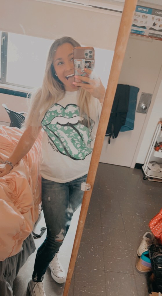 - Rolling Stones T Shirt https://www.target.com/p/women-s-st-patrick-s-day-the-rolling-stones-shamrock-logo-short-sleeve-graphic-t-shirt-white/-/A-84648358?preselect=84176524#lnk=sametab